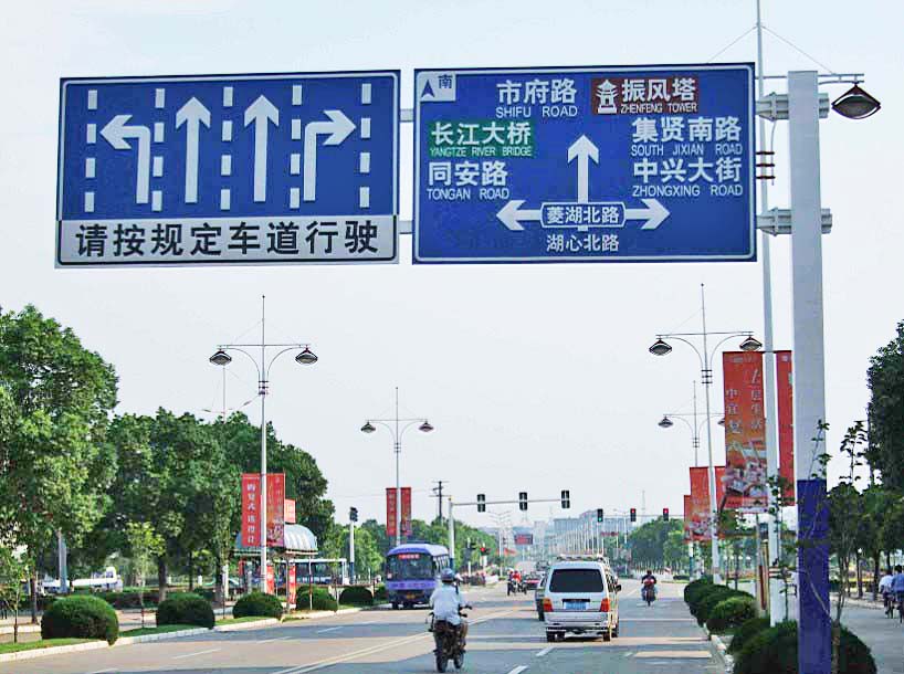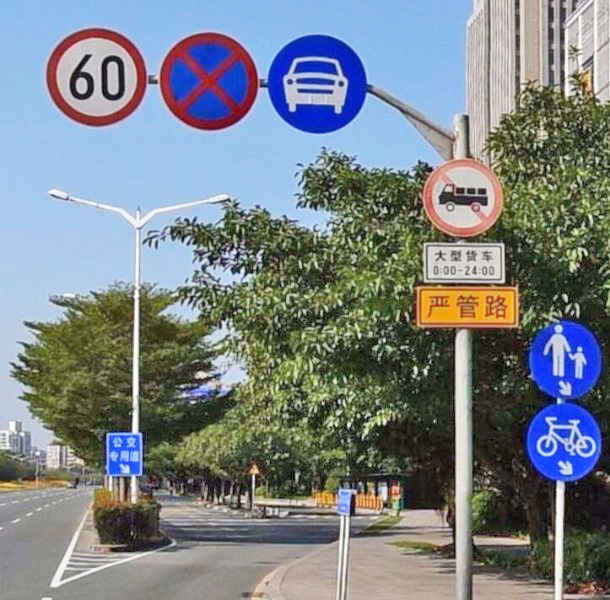 交通標(biāo)志分為主標(biāo)志和輔助標(biāo)志兩大類?! ?主標(biāo)志 1.1 警告標(biāo)志:警告車輛、行人注意危險(xiǎn)地點(diǎn)的標(biāo)志?! ?.2 禁令標(biāo)志:禁止或限制車輛、行人交通行為的標(biāo)志。 1.3 指示標(biāo)志:指示車輛、行人行進(jìn)的標(biāo)志?! ?.4 指路標(biāo)志:傳遞道路方向、地點(diǎn)、距離信息的標(biāo)志?! ?.5 旅游區(qū)標(biāo)志:提供旅游景點(diǎn)方向、距離的標(biāo)志?! ?.6 道路施工安全標(biāo)志:通告道路施工區(qū)通行的標(biāo)志。 2輔助標(biāo)志 附設(shè)在主標(biāo)志下,起輔助說(shuō)明作用的標(biāo)志。